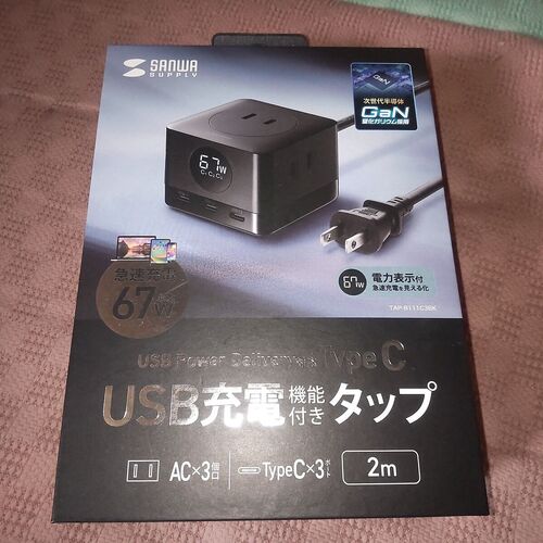 GIGAZINEの懸賞でサンワサプライのUSB PD対応電源タップがあたったー。